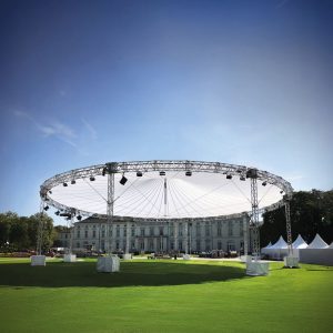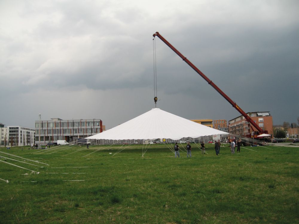 Ein Fallschirm, der an einem Mobilkran hing, inspirierte Felix Lenz vor 20 Jahren, das Patent für eine Überdachung anzumelden, die die Branche nachhaltig verändern sollte. Lenz ersetzte den Kran durch einen Traversenring, setzte einen Giebel darauf und spannte die Membran so ein, dass ein zentraler Punkt entstand. Das Ergebnis: eine flexible Eventüberdachung, die heute viel mehr ist als nur ein Wetterschutz.