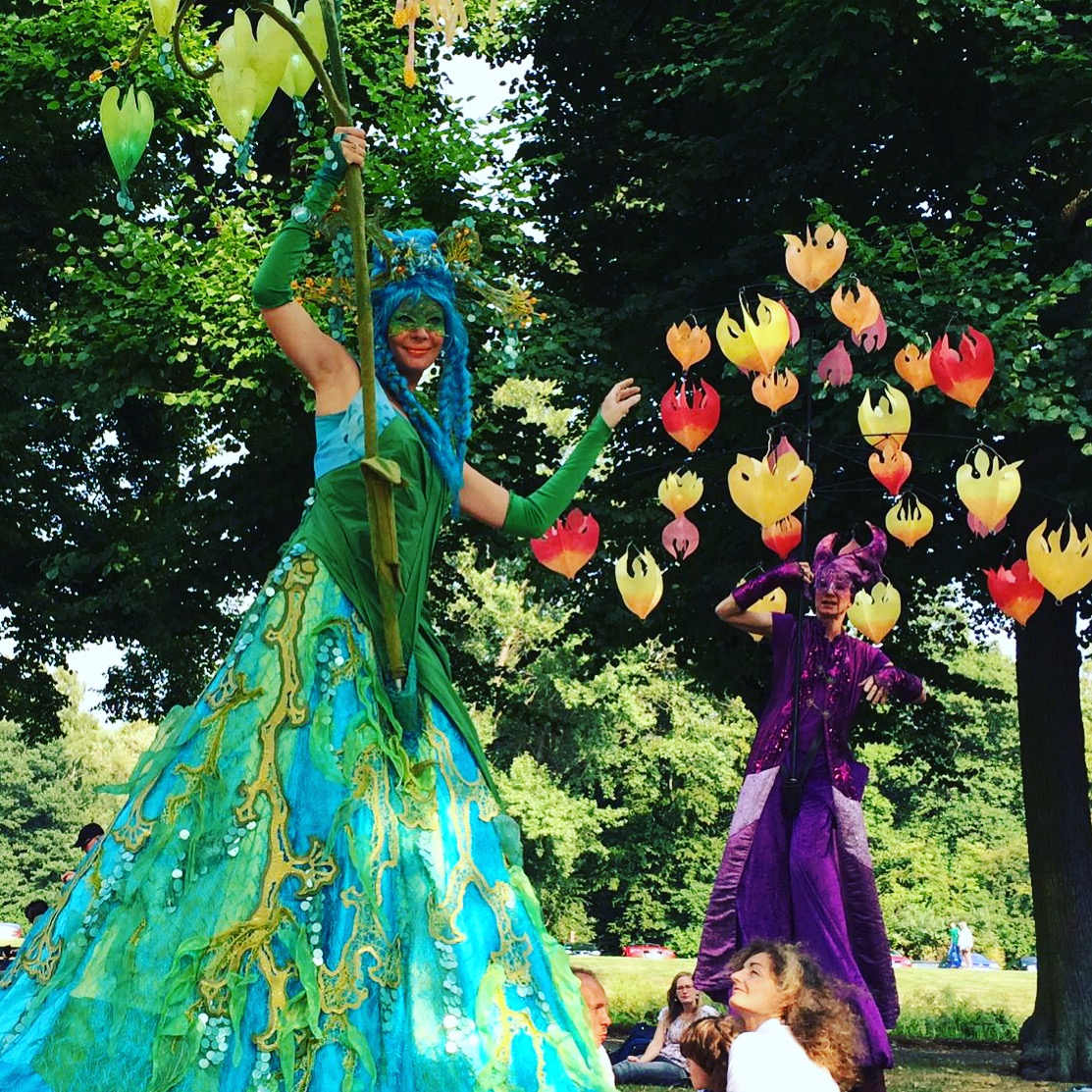 Und diesen Kultstatus erleben wir schon beim Betreten des imposanten Geländes der Herrenhäuser Gärten. Die Stimmung ist ausgelassen, die einströmenden Gäste werden von Walk-Acts wie dem Clown Frans Custers oder Jochen dem Elefant begrüßt. In der Ferne tanzt das Stelzentheater Teatro Pavana. Schnell werden Picknickdecken ausgebreitet, Weinflaschen entkorkt und der mitgebrachte Proviant ausgepackt. Und immer mehr Künstler beleben das Szenario. Da sind die Traumlichtträger des Pantao Stelzentheater, die Rallye-Fahrer von Tukkersconnexion, das Scharniertheater mit Leila, Lasse und Lola und viele mehr. Wir kommen aus dem Staunen gar nicht mehr heraus und bekommen die Eröffnungsworte nur am Rande mit. Als dann aber alle um uns herum wie auf Kommando ihre Picknickdecken wieder einrollen und schlagartig in die weitläufige Parkanlage ausströmen wird uns bewusst, dass nun das Programm an den mehr als 30 Spielorten startet. Also auch schnell den Wein ausgetrunken, den letzten Biss vom Ciabatta genommen und auf geht’s.